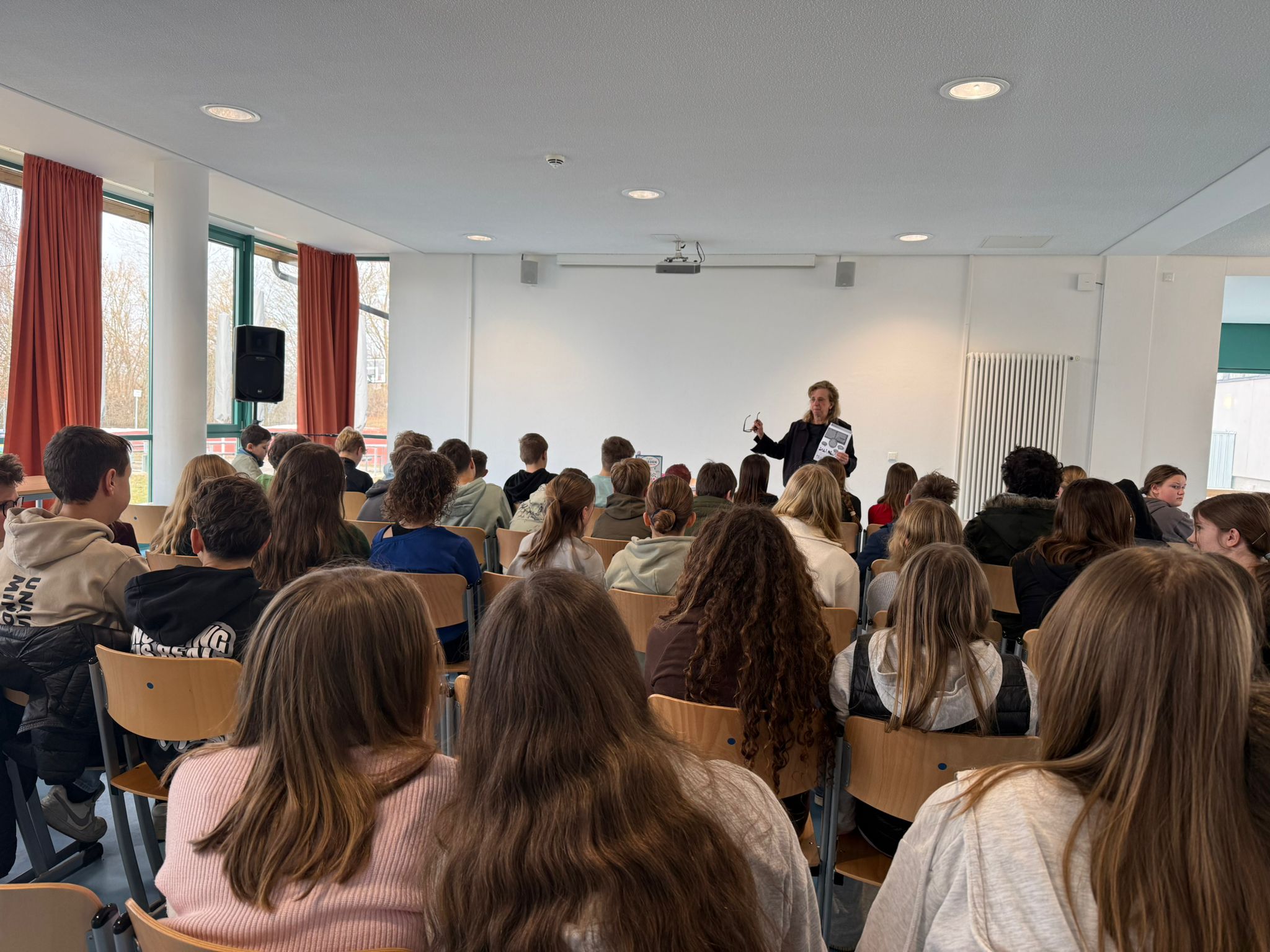 Die Autorin Christine Paxmann, unter anderem Verfasserin des Sachbuchs „Demokratie für Kids“, besuchte in der Woche vor den Faschingsferien die Sechstklässlerinnen und Sechstklässler unserer Realschule.