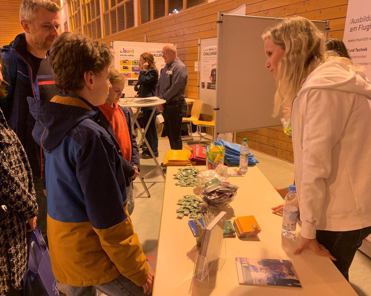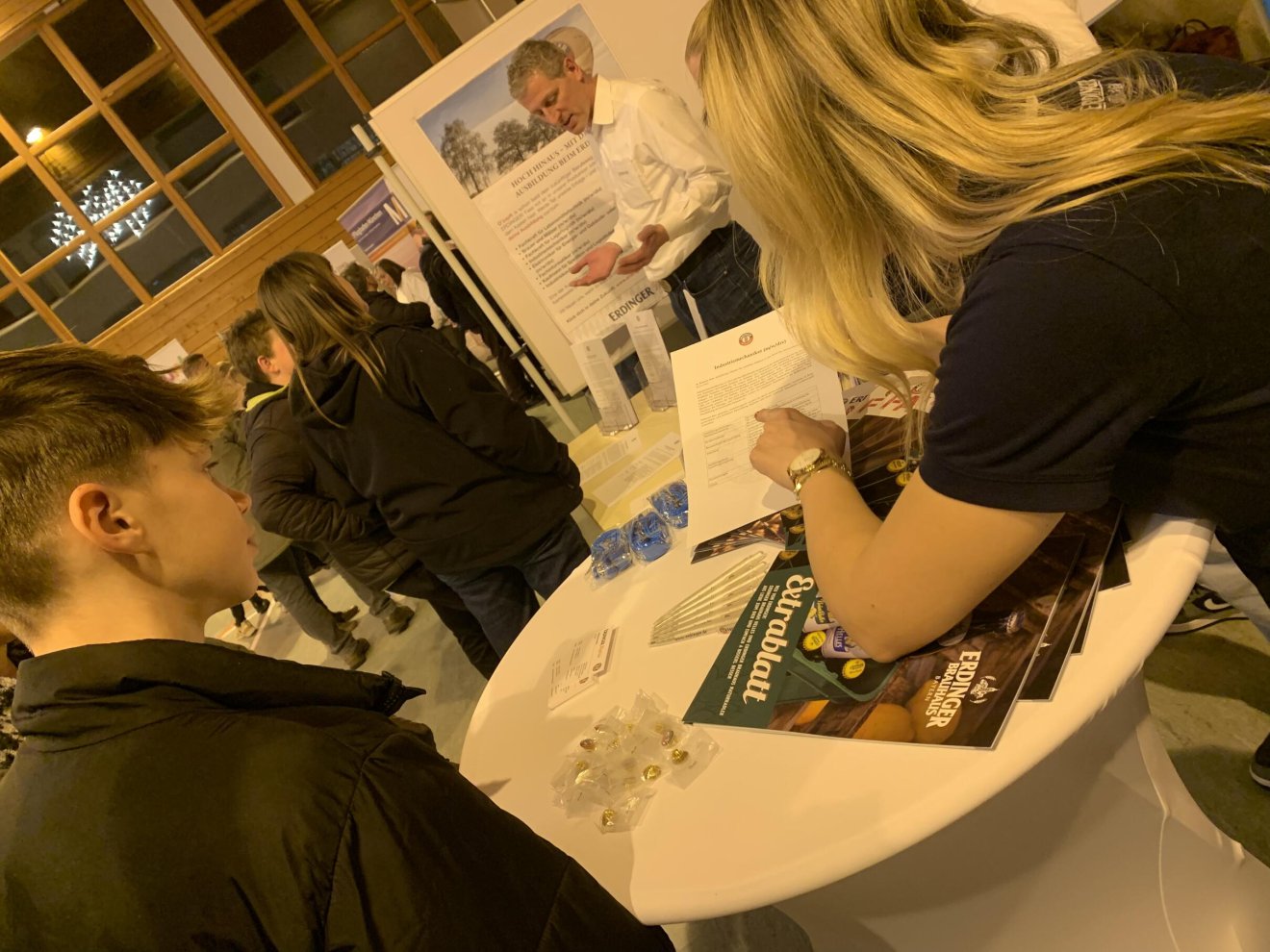 Neues erfahren, Experten mit Fragen löchern, Kontakte knüpfen, Ausbildungsmöglichkeiten kennenlernen und das alles an einem Abend. Am Berufsorientierungsabend der RSO Ende Januar hatten Schülerinnen und Schüler der höheren Jahrgangsstufen die Gelegenheit, sich über unterschiedliche Ausbildungsmöglichkeiten aus erster Hand zu informieren. Fünfzig verschiedene Unternehmen und darunter einige namhafte Betriebe direkt aus der Umgebung konnten gewonnen werden und erklärten sich freundlicherweise dazu bereit, Ausbildungsberufe vorzustellen. So konnten die Besucherinnen und Besucher ihre Fragen direkt vor Ort an die Experten richten und sich über Ausbildungs- und Berufsmöglichkeiten aufklären lassen. Die Mehrzweckhalle und die Aula dienten als Ausstellungsfläche und man gelangte von Infostand zu Infostand. Den Weg zurück ins Schulhaus hatten an diesem Abend erfreulicherweise auch mehrere Ehemalige der RSO gefunden, die nun interessierten Schülerinnen und Schülern ihr gewonnenes Wissen aus der Ausbildungs- und Berufspraxis weitergaben.