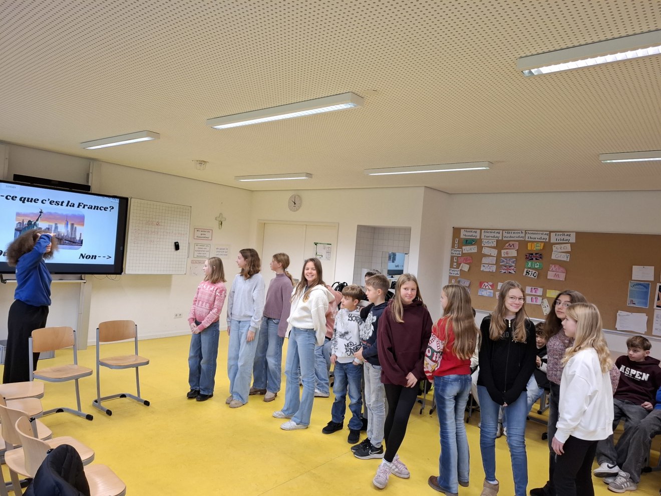 Mit großer Begeisterung brachte sie auf spielerische Weise den Schülern Frankreich ein wenig näher, indem sie spannende Anekdoten erzählte und zeigte, wieviele ähnliche Wörter die französische und deutsche Sprache miteinander verbinden. Unsere Sechstklässler erlebten spannende Schulstunden und schafften es am Ende sogar, sich auf Französisch vorzustellen.