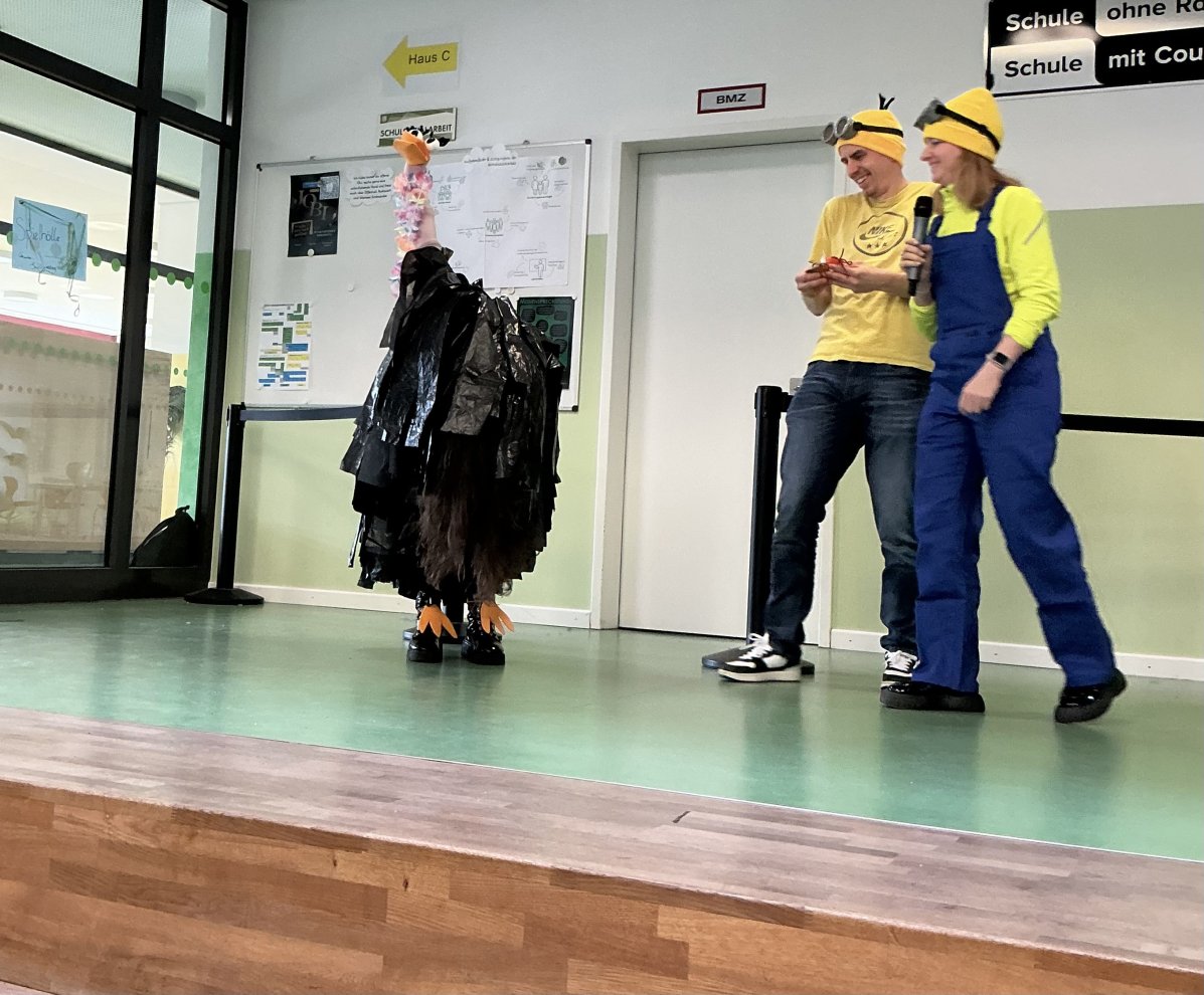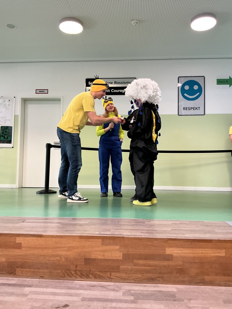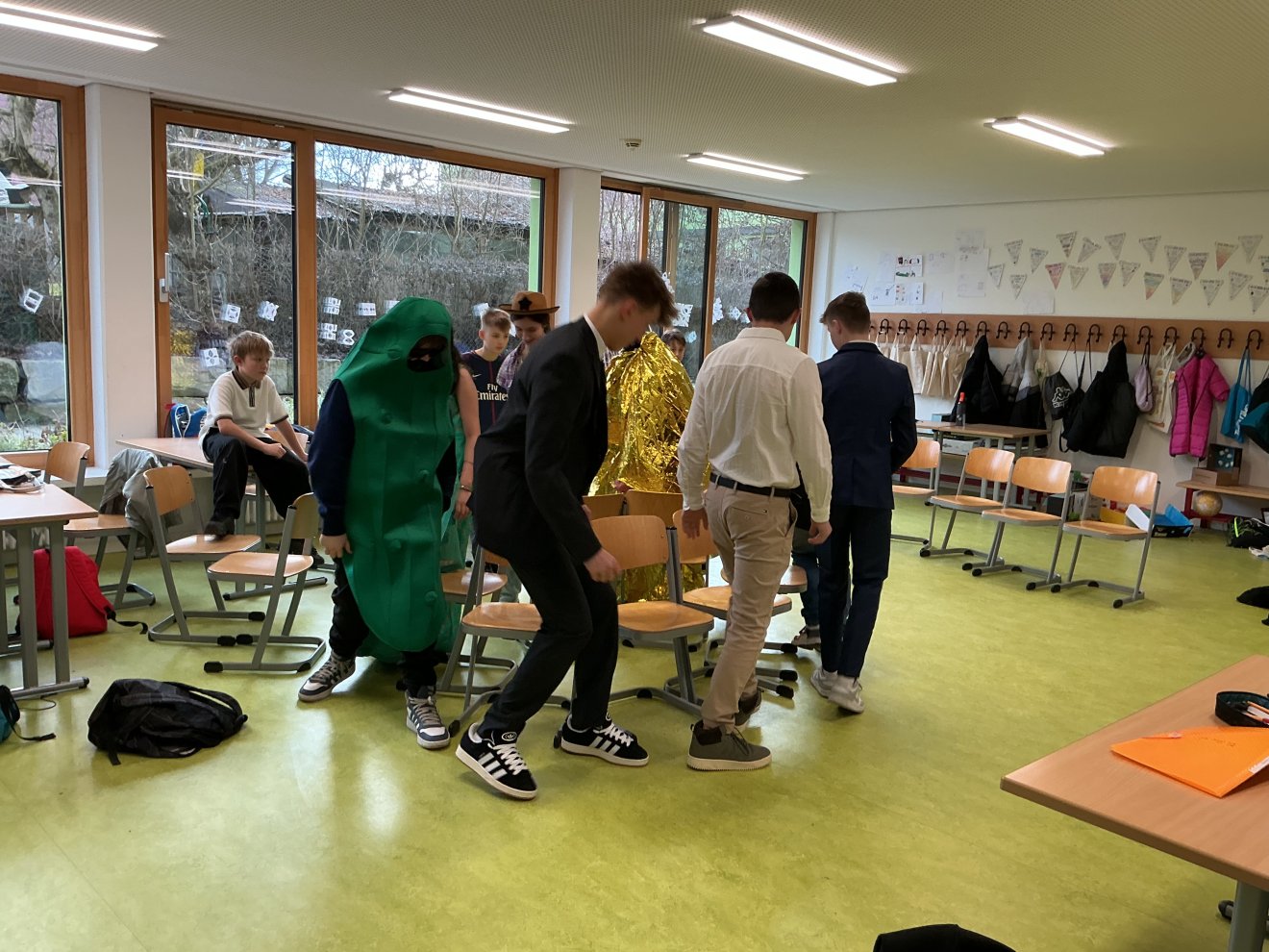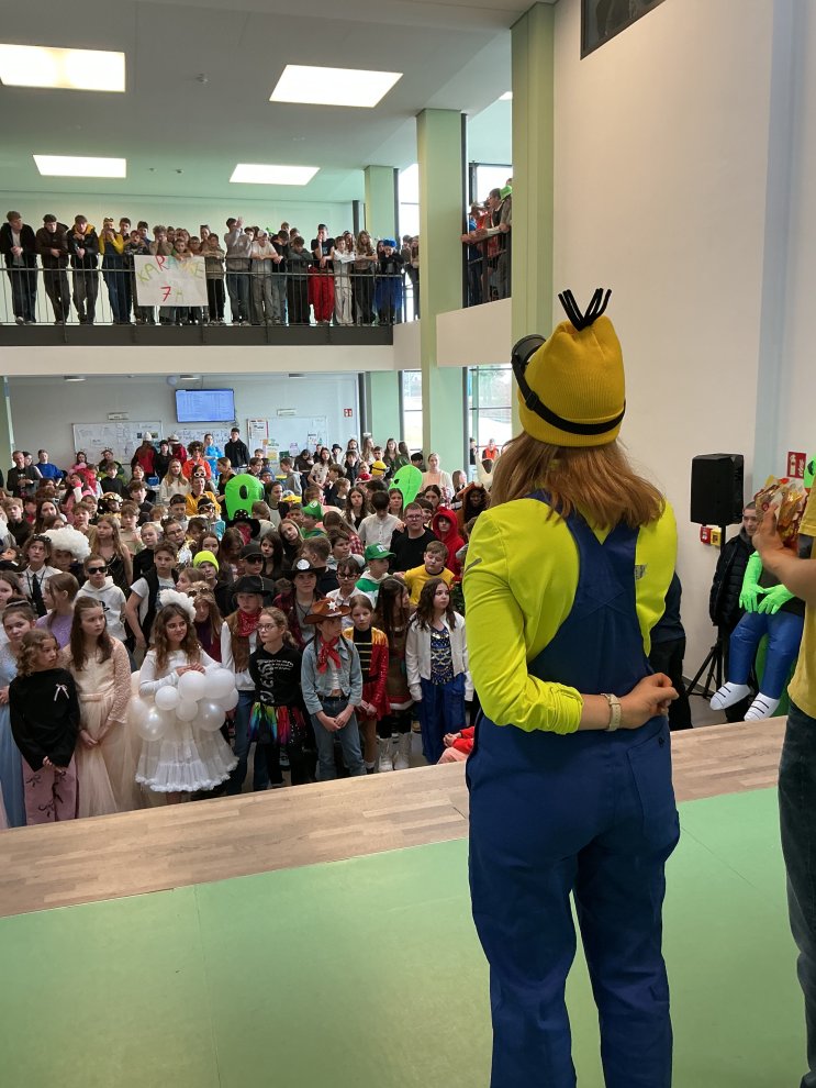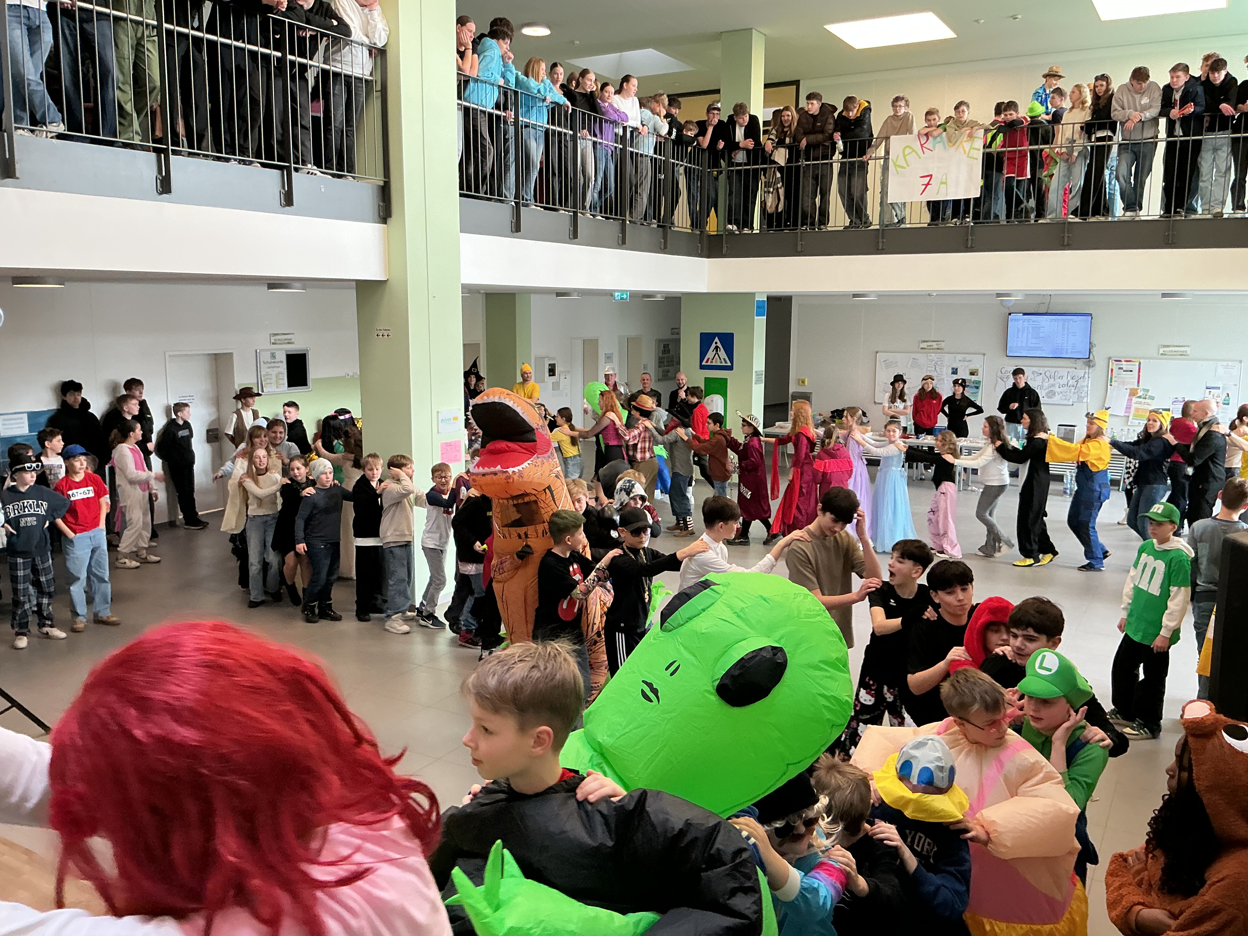 Zum großen Finale traf sich die gesamte Schulfamilie in der Aula. Die SMV prämierte die kreativsten, ausgefallensten und witzigsten Kostüme, bevor sich eine riesige Polonaise quer durch das Schulhaus schlängelte.