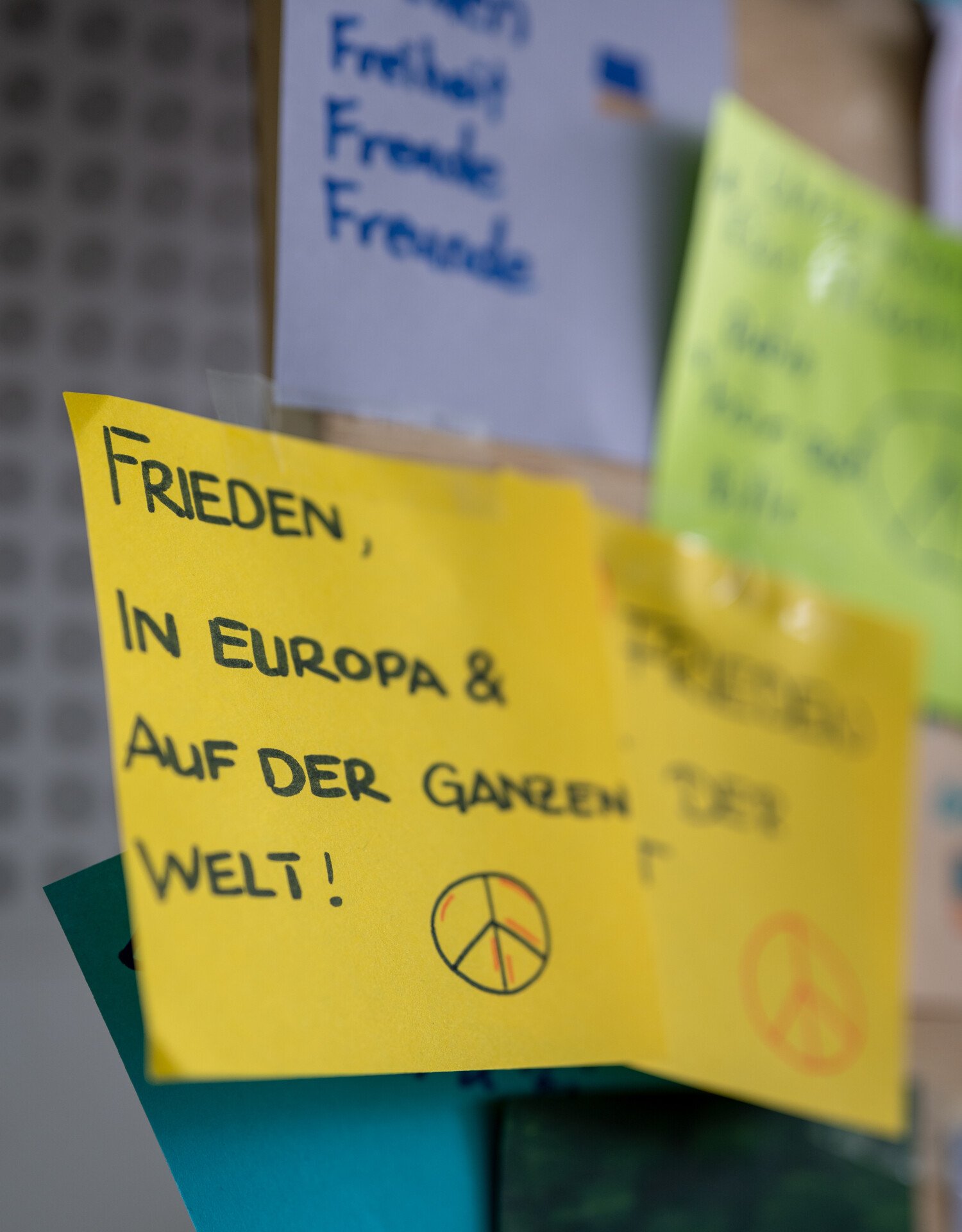 Der Angriff auf die Ukraine macht viele fassungslos – auch an der Realschule Oberding. Dieser Krieg zerstört nicht nur das Leben und die Heimat vieler Ukrainer, er ist zugleich ein Angriff auf Frieden und Gerechtigkeit, auf Freiheit und Demokratie. Die Fastenzeit vor Ostern lädt uns ein, darüber nachzudenken – gerade auch mitten im Schulalltag. Und so bekam unser diesjähriger Jugendkreuzweg eine ganz besondere Station.