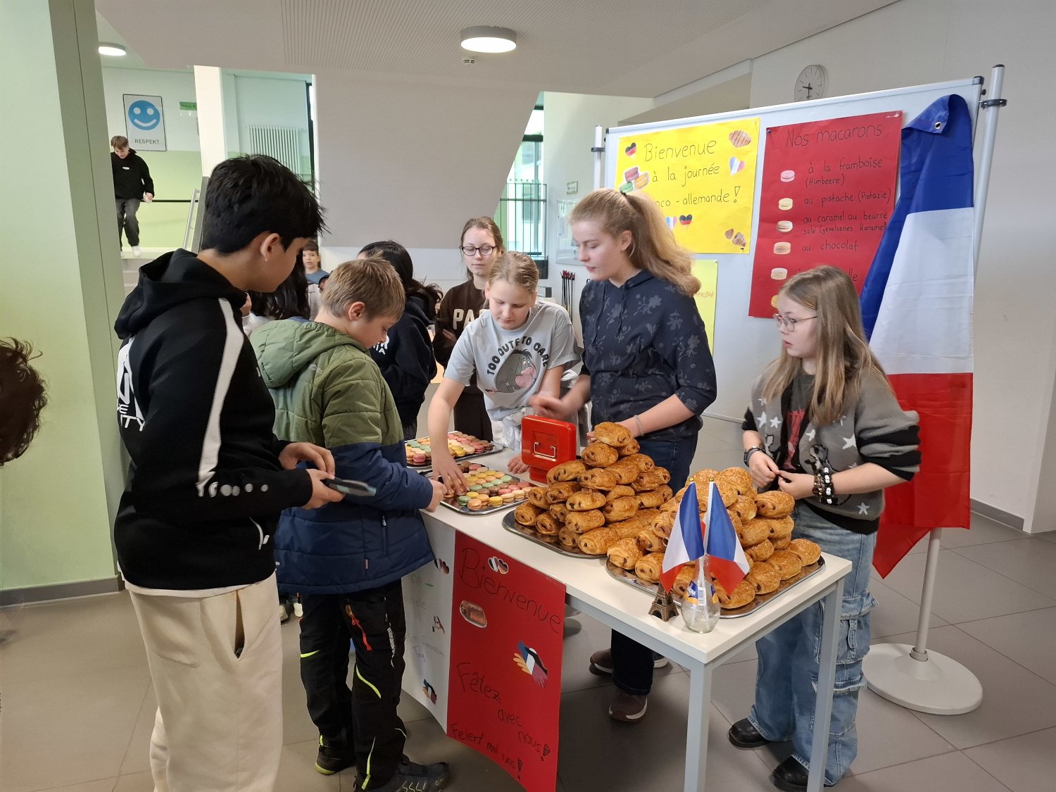Die Schülerinnen und Schüler unserer Französischklassen verkauften französische Süßigkeiten und sorgten zusammen mit viel Dekoration und französischer Musik für französischen Flair in unserer Aula.