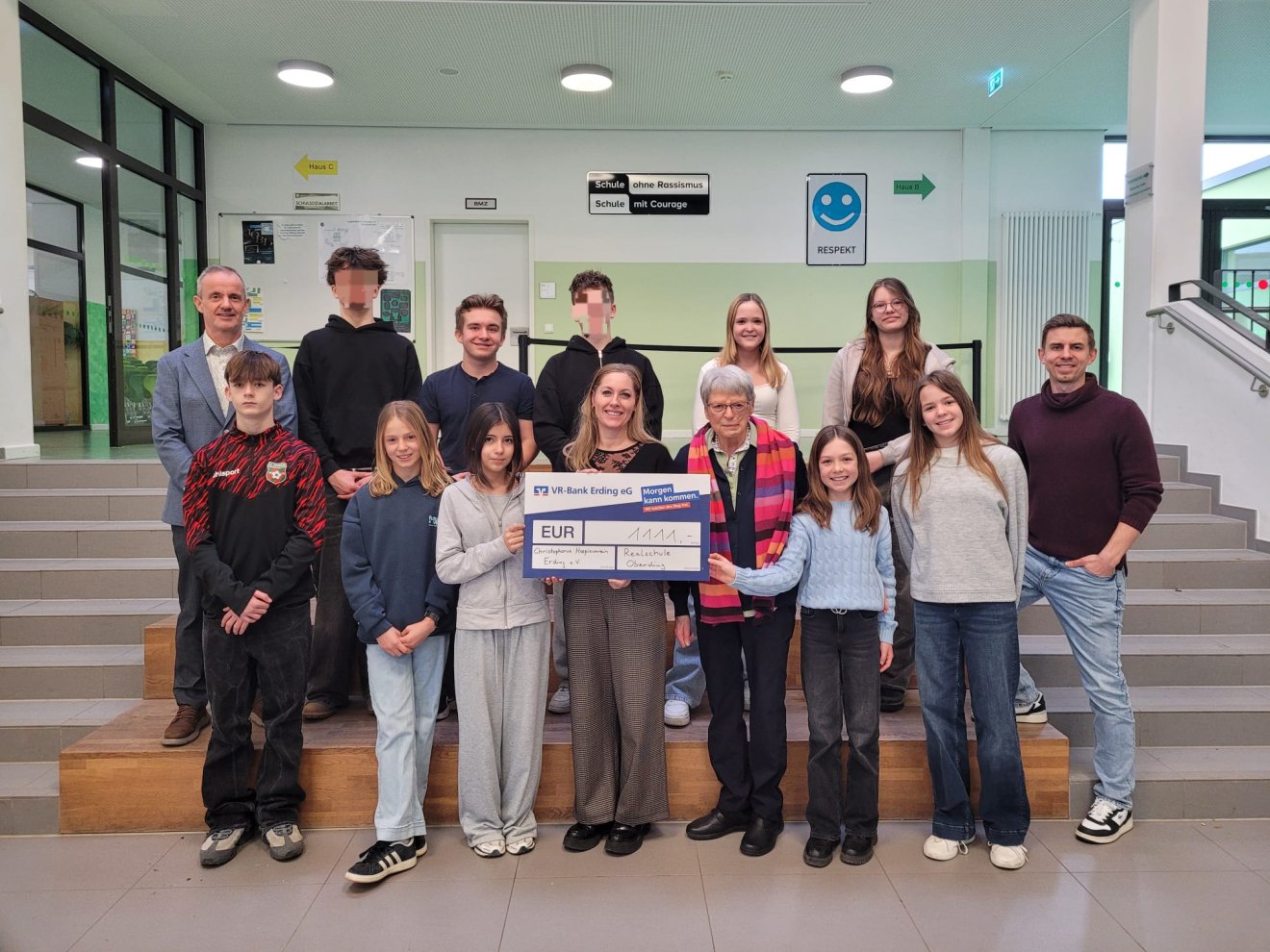 Unter diesem Motto fand im vergangenen Schuljahr an der Realschule Oberding ein Spendenlauf aller fünften bis siebten Klassen statt. Bei diesem sammelten die Schülerinnen und Schüler insgesamt 3300€, die nun gleichmäßig verteilt an drei Hilfsorganisationen (Initiative krebskranke Kinder München e.V., Josefsheim Wartenberg, Christophorus Hospizverein Erding) übergeben wurden.