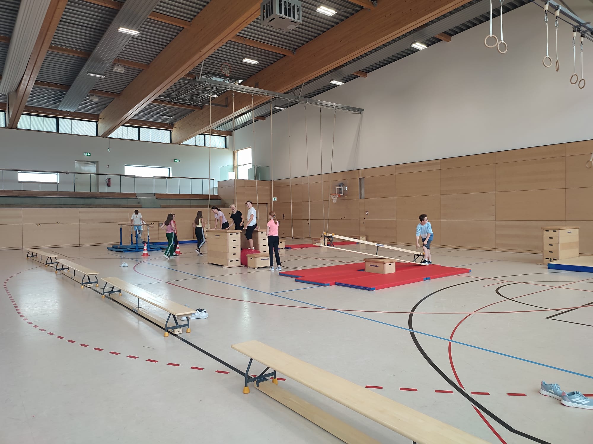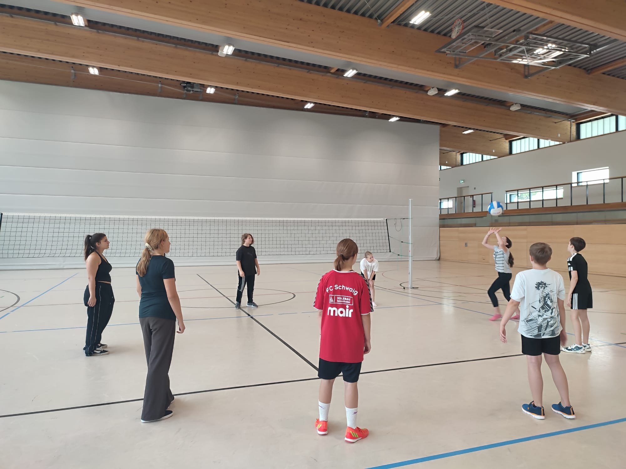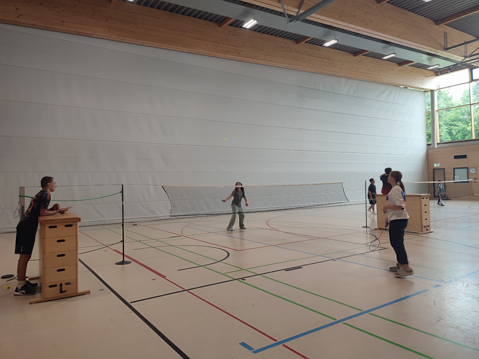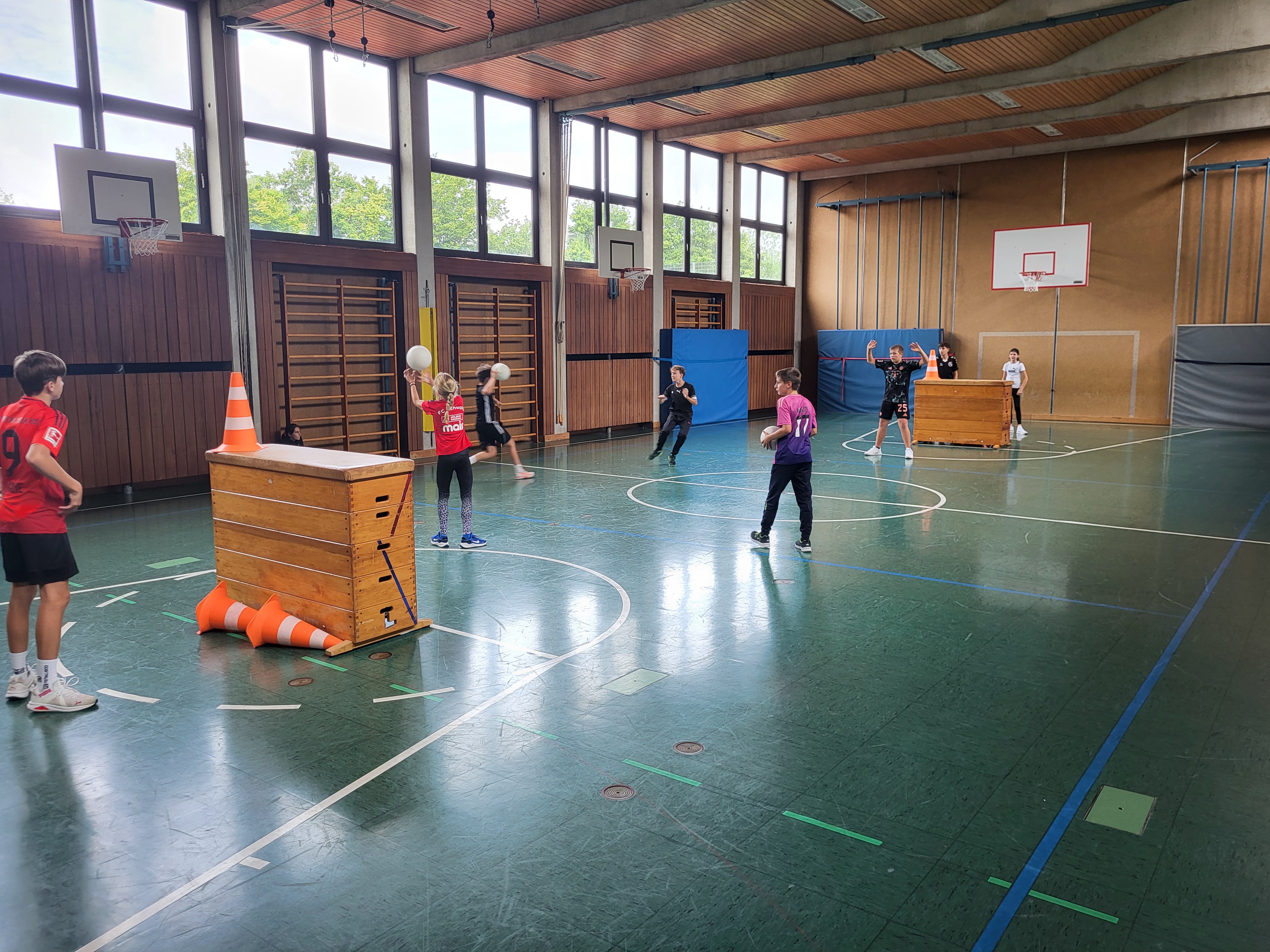 Neuntklässlerinnen und Neuntklässler zeigten ihren jüngeren Mitschülerinnen und Mitschülern ihre Sportart, klärten über theoretische Inhalte auf und leiteten Trainingseinheiten beim Handball, Basketball, Flag-Football, Badminton, Parcours, Tanz sowie für Burgschlacht und Volleyball 😀.
