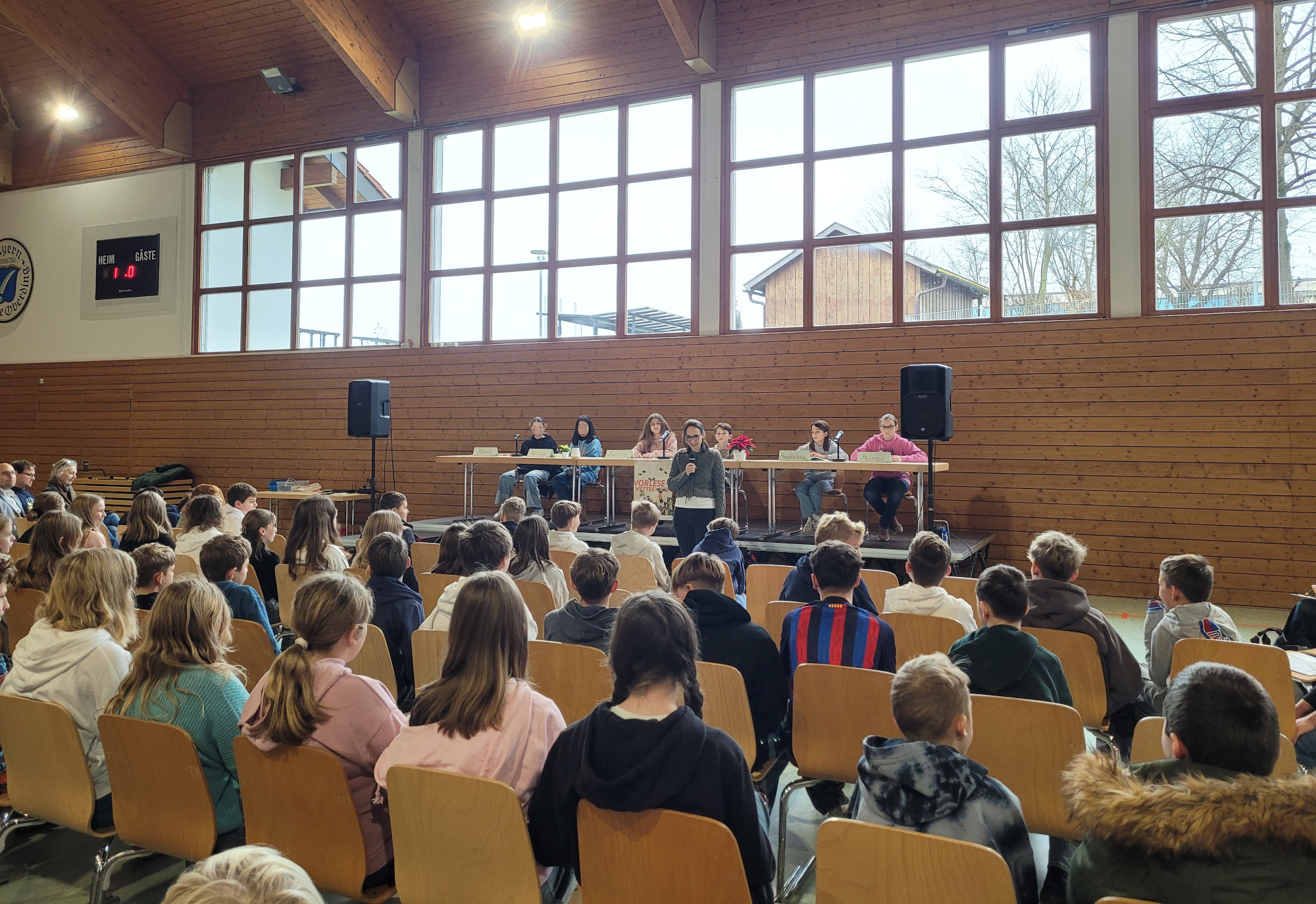 Für die sechsten Klassen fand der Vorlesewettbewerb statt. Sechs Schülerinnen und Schüler, die zuvor in ihren Klassen als beste Vorleserinnen und Vorleser ausgewählt worden waren, traten gegeneinander an. Mit großer Freude stellten sie ihre Lieblingsbücher vor – darunter „Wonka“, „Die Duftapotheke“ sowie Titel aus bekannten Reihen wie „Lotta-Leben“ oder „Gregs Tagebuch“. Im zweiten Teil des Wettbewerbs lasen die Teilnehmenden einen unbekannten Auszug aus Judith Burgers Jugendbuch „Gertrude Grenzenlos“, den Frau Grimes von der Gemeindebücherei Oberding ausgewählt hatte. Die Jury bewertete Lesetechnik, Interpretation und Textauswahl – und hatte keine leichte Entscheidung zu treffen. Am Ende setzte sich Letizia aus der 6b durch und wurde zur besten Vorleserin gekürt. Wir gratulieren ihr herzlich und drücken die Daumen für den Kreisentscheid in Erding!