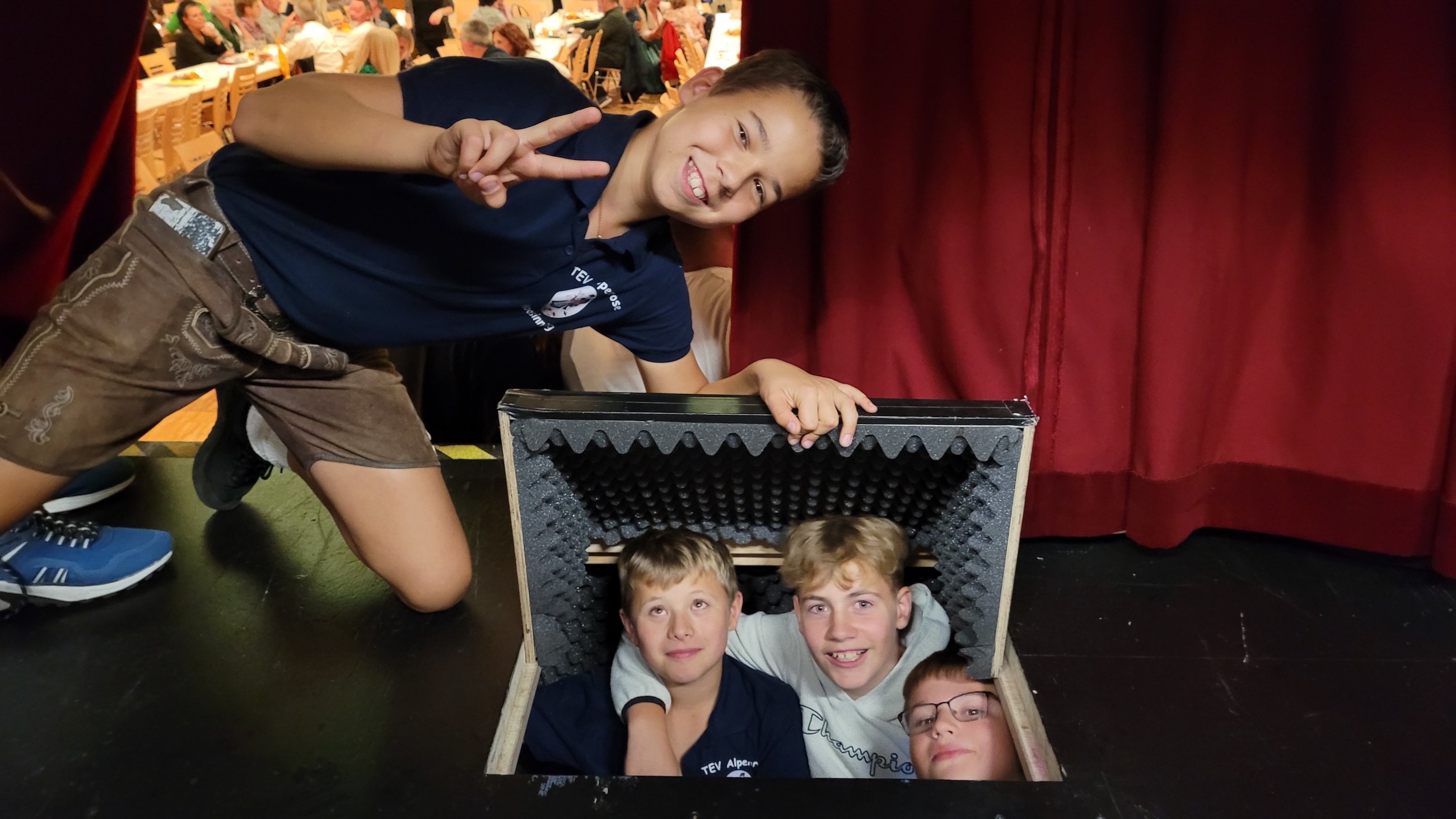 Die Teilnehmenden des Wahlfachs "Heimat und Brauchtum" blicken hinter die Theaterkulissen!