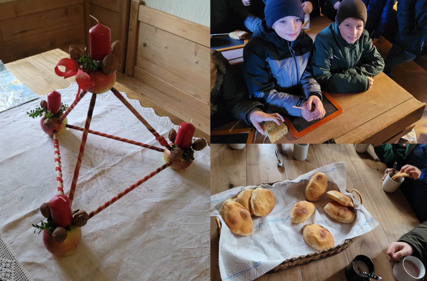 Paradeisl (Vorläufer des Adventskranzes), Schux´n (bayerisches Schmalzgebäck) und ein Klassenzimmer anno dazumal