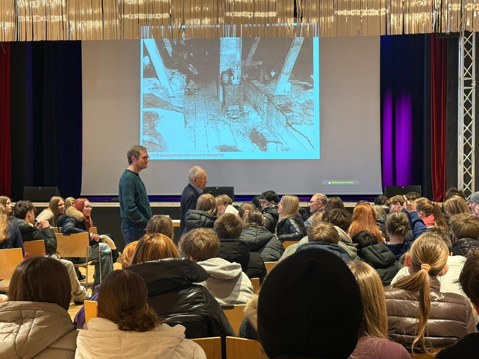 Die Schülerinnen und Schüler hörten aufmerksam zu und stellten im Anschluss viele nachdenkliche Fragen. Besonders beeindruckend war Herrn Naors Appell an die junge Generation, Verantwortung zu übernehmen, Erinnerung wachzuhalten und sich aktiv für Menschlichkeit und Toleranz einzusetzen.