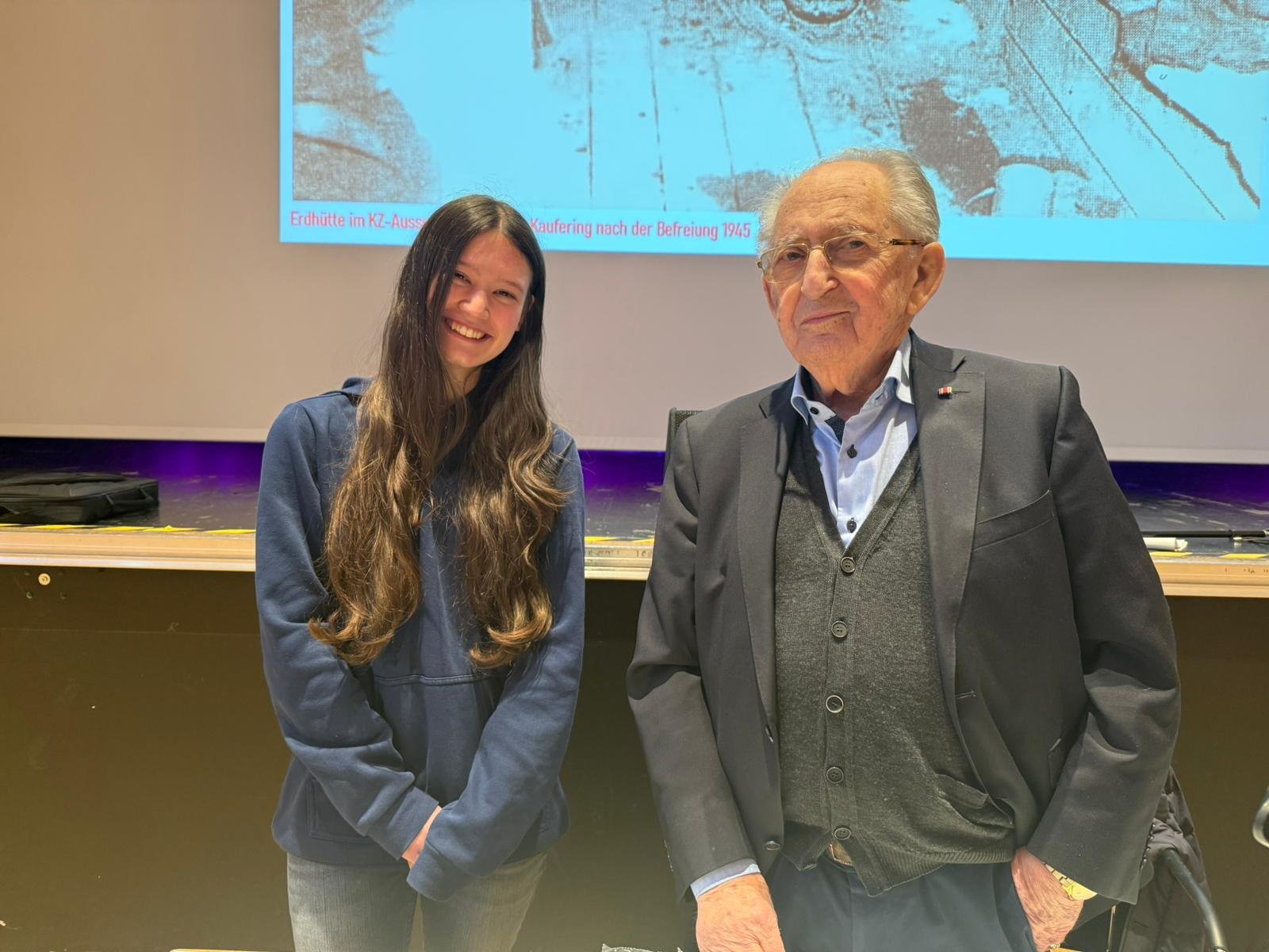 Abba Naor, Holocaust-Überlebender und engagierter Zeitzeuge, berichtete den Schülerinnen und Schülern von seiner Kindheit in Litauen, seiner Verfolgung durch die Nationalsozialisten sowie seinem Überleben im Ghetto Kaunas und im Konzentrationslager Stutthof. In ruhigen, aber eindringlichen Worten schilderte er seine Erlebnisse und machte deutlich, welche Folgen Ausgrenzung, Hass und Gleichgültigkeit haben können.